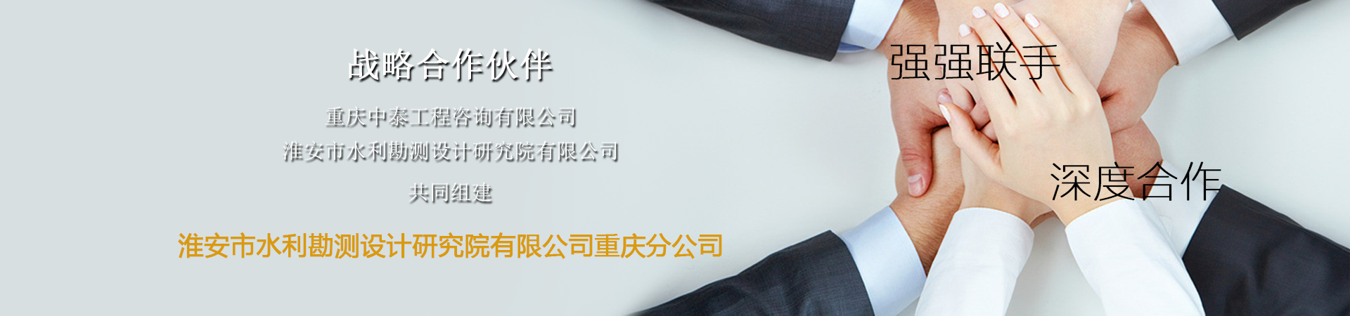 公司在不斷加強(qiáng)自身建設(shè)的同時(shí),積極開(kāi)拓發(fā)展空間,于2013年6月與淮安市水利勘測(cè)設(shè)計(jì)研究院有限公司簽訂了長(zhǎng)期戰(zhàn)略合作協(xié)議,共同組建了淮安市水利勘測(cè)設(shè)計(jì)研究院有限公司重慶分公司,擴(kuò)大了經(jīng)營(yíng)平臺(tái),實(shí)現(xiàn)了優(yōu)勢(shì)互補(bǔ),雙贏(yíng)發(fā)展。新平臺(tái)具有咨詢(xún)、測(cè)繪、勘察、設(shè)計(jì)、監(jiān)理等多項(xiàng)甲級(jí)資質(zhì),業(yè)務(wù)范圍涉及水利、水電、水運(yùn)、公路、橋隧、建筑、測(cè)繪、巖土工程勘察、水文調(diào)查、工程監(jiān)理、工程檢測(cè)、施工總承包等更廣泛的領(lǐng)域?;窗彩兴睖y(cè)設(shè)計(jì)研究院有限公司是一支具有悠久歷史和優(yōu)良傳統(tǒng)的勘測(cè)設(shè)計(jì)隊(duì)伍,其前身是淮安市水利勘測(cè)設(shè)計(jì)研究院和淮安市工程勘測(cè)院,分別成立于1963年和1957年,目前隸屬中國(guó)最大的水務(wù)集團(tuán)——北控水務(wù)集團(tuán),業(yè)務(wù)范圍遍及全國(guó)各省區(qū)。新平臺(tái)秉承“獻(xiàn)身、負(fù)責(zé)、求實(shí)”的水利行業(yè)精神,緊跟國(guó)家“一帶一路”發(fā)展戰(zhàn)略,立足西南五省區(qū),面向世界大格局。